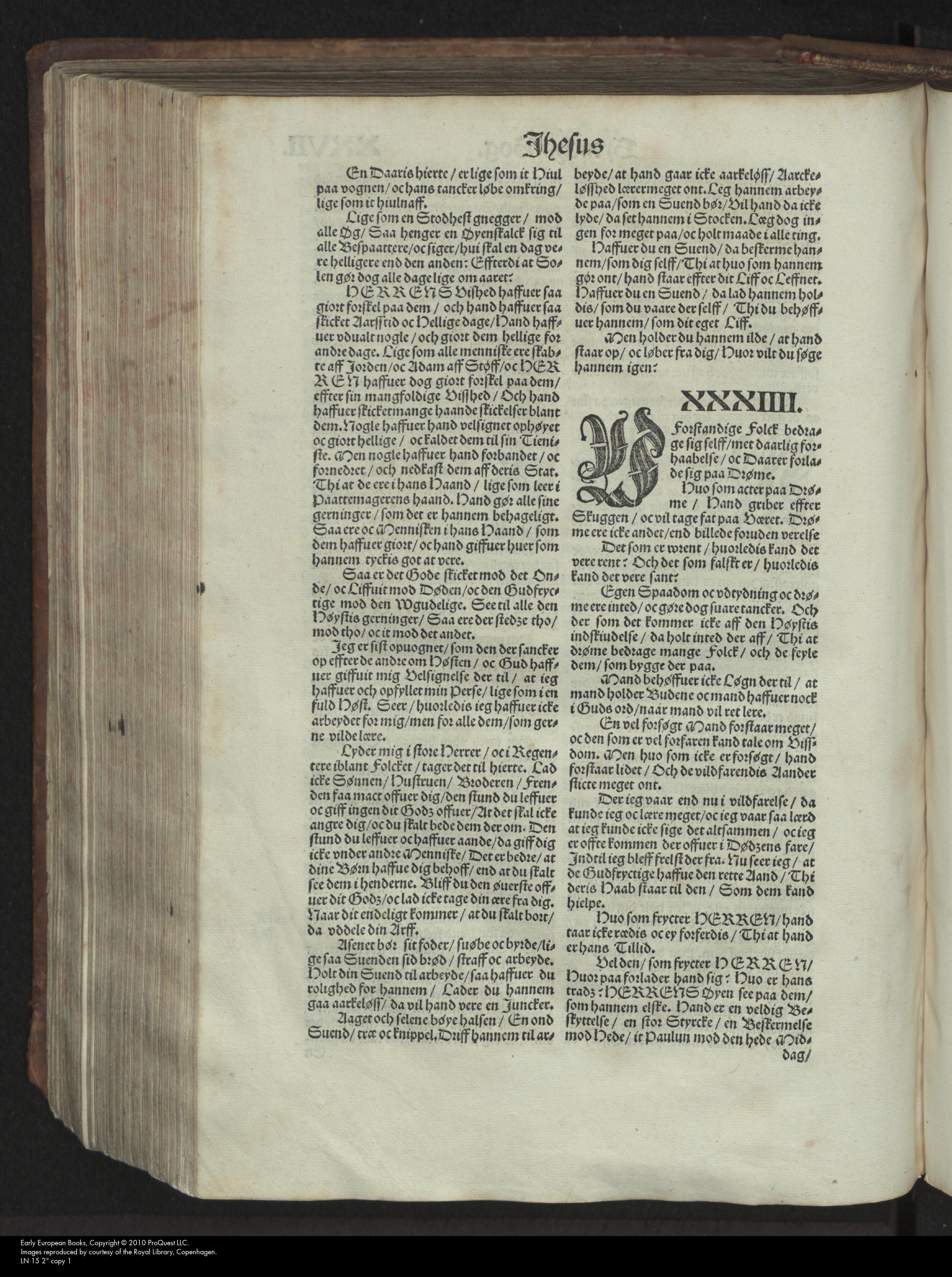 Lyder mig i store Herrer / oc i Regentere iblant Folcket / tager det til hierte. Lad icke Sønnen / Hustruen / Broderen / Frenden faa mact offuer dig / den stund du leffuer oc giff ingen dit Godz offuer / At det skal icke angre dig / oc du skalt bede dem der om. Den stund du leffuer oc haffuer aande / da giff dig icke vnder andre Menniske / Det er bedre / at dine Børn haffue dig behoff / end at du skalt see dem i henderne. Bliff du den øuerste offuer dit Godz / oc lad icke tage din ære fra dig. Naar dit endeligt kommer / at du skalt bort / da vddele din Arff.